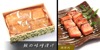 味噌の風味が食欲をそそるサーモンの味噌漬けです。厳選したサーモンを金子屋特製の味噌にじっくり漬け込んでいます。味噌を軽く洗い流してから焼いてお召し上がりください。程良い脂が残り外はパリッと中はしっとりとした食感が楽しめます。
